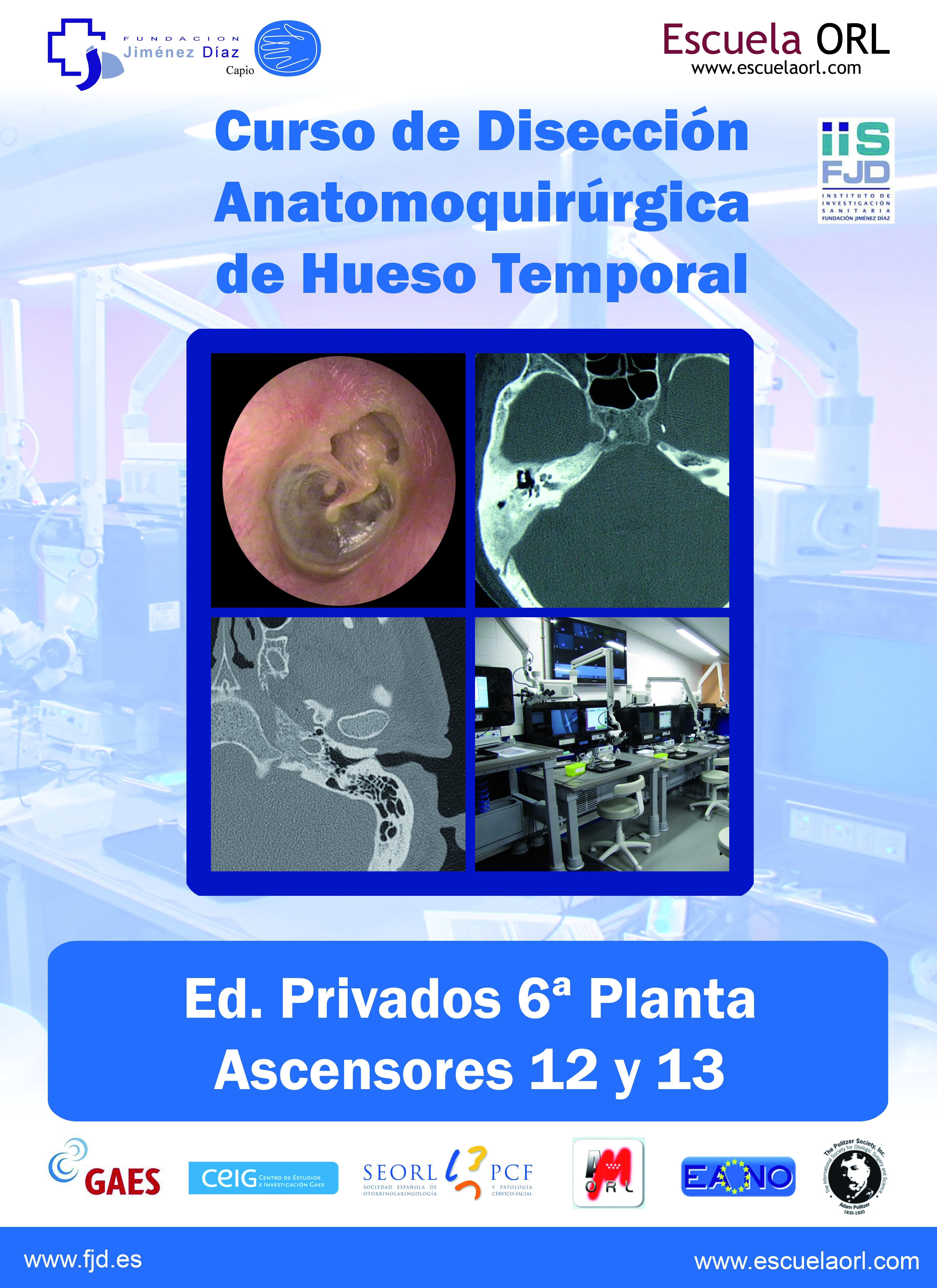 Los próximos días 8 y 9 de Marzo, tendrá lugar en la Fundación Jiménez Díaz, el Curso de Disección Anatomoquirúrgica de Hueso Temporal.