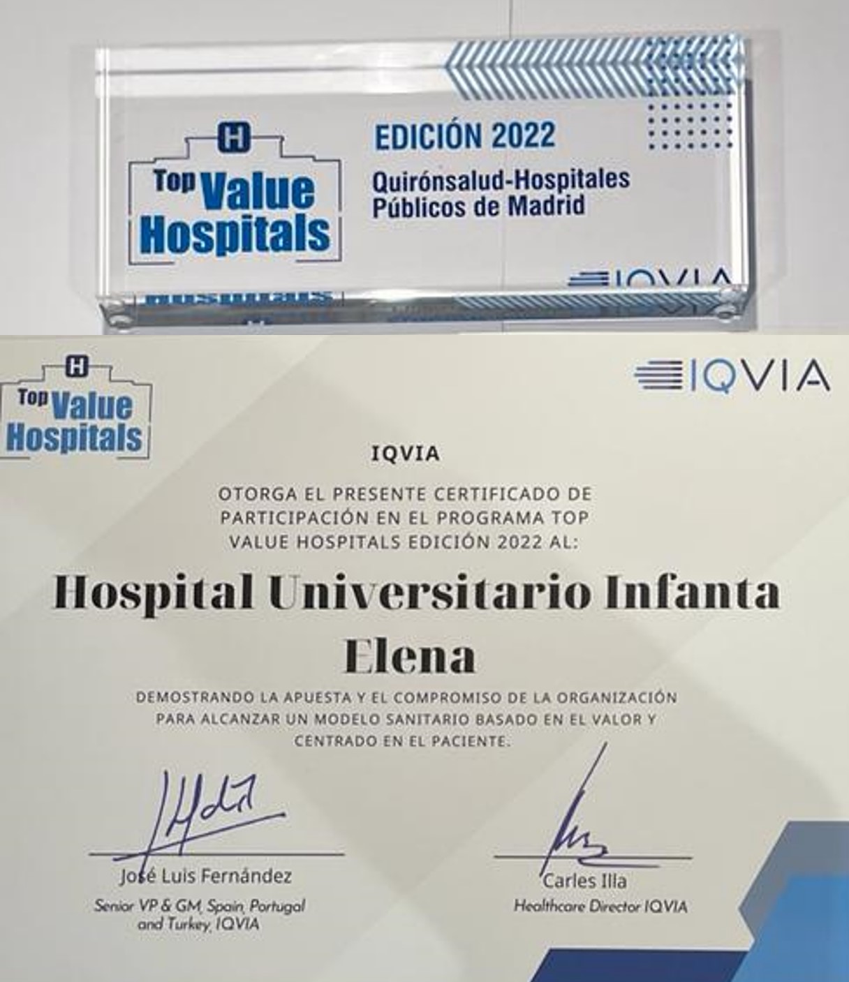 El Hospital Universitario Infanta Elena, galardonado en los Premios Top Value por su excelencia y apuesta por una atención basada en el valor