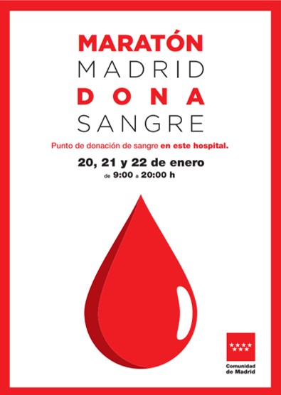 , integrado en la red pública madrileña, se suma este sábado al Maratón simultáneo de donación de sangre que organiza la Comunidad de Madrid en todos los puntos de donación bajo el lema "Madrid dona sangre", desde mañana, jueves 20 al sábado 22 de enero, en horario ininterrumpido de 09:00h a 20:00h. El resto de días de esta semana la sala estará abierta en su horario habitual, de 07:30h a 14:30h.